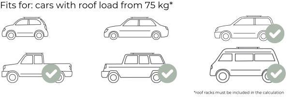 ✔ Only approx. 69 kg total weight – suitable for vehicles with 75 kg roof load