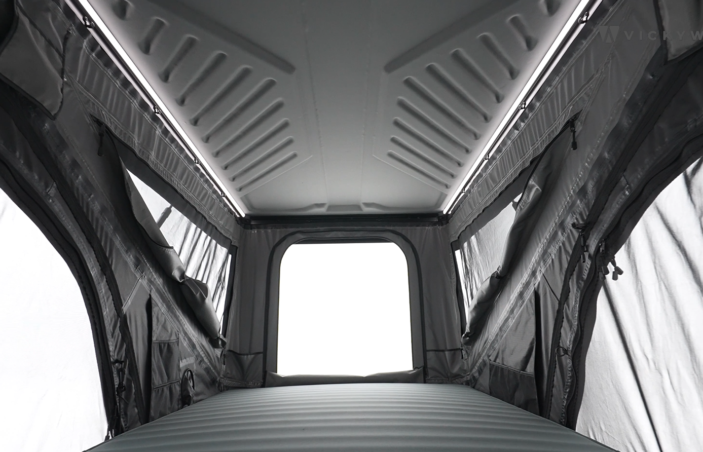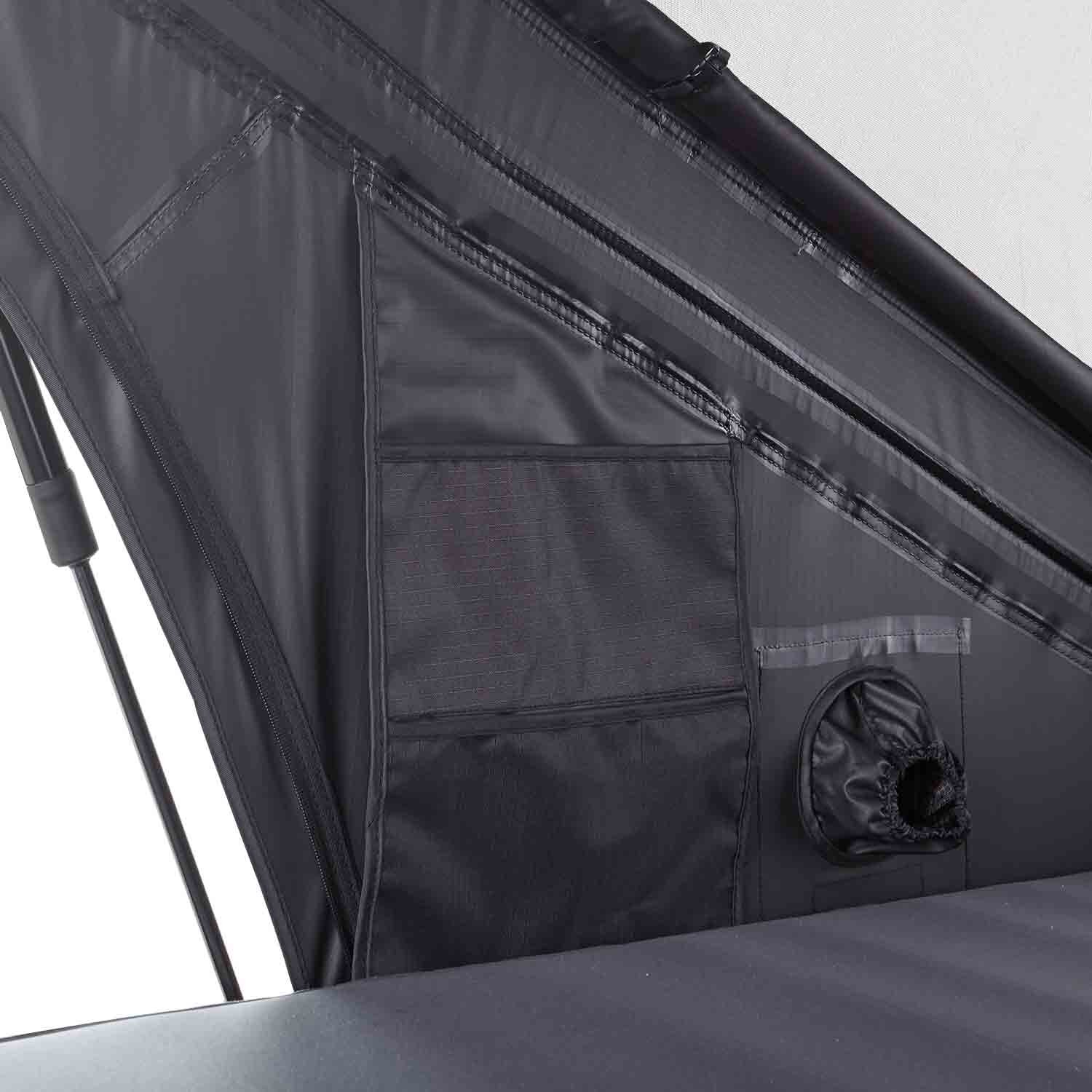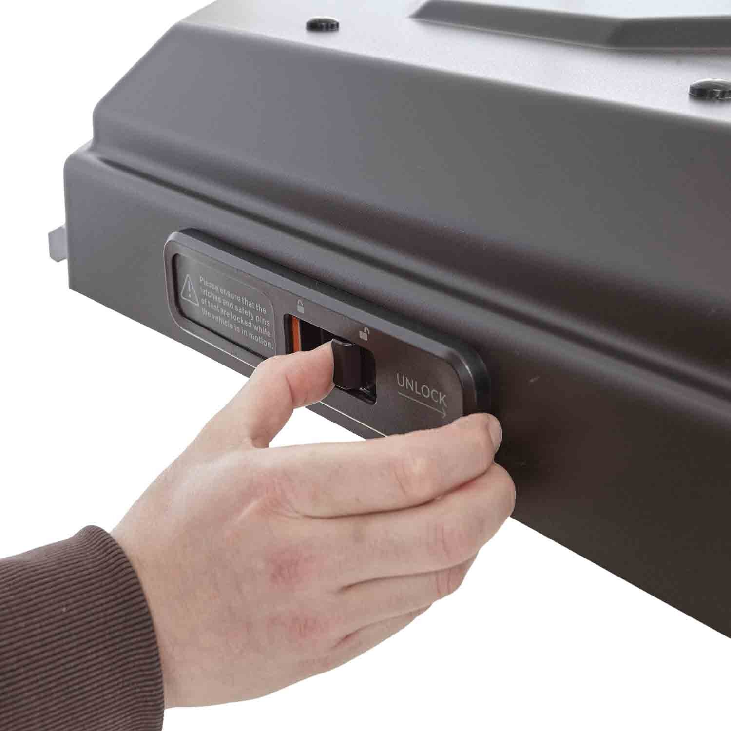 Das VICKYWOOD Hybrid-Dachzelt HAZEL vereint die Vorteile eines klassischen Triangel-Zelts mit der Funktionalität eines Pop-Up-Systems. Die leichte ABS-Hartschale und zwei Paare STABILUS® Gasdruckfedern ermöglichen ein ultraschnelles Öffnen ohne Kraftaufwand – für alle, die beim Reisen keine Kompromisse machen wollen.