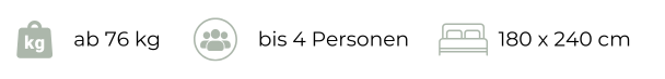• Großzügige Liegefläche von ca. 160/180 × 240 cm – viel Platz auch für Taschen & Gepäck